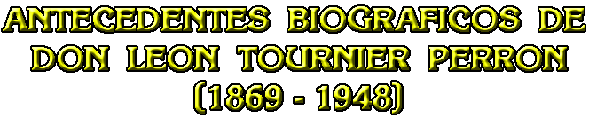 1869: 30 de Agosto, nace Marie Charles Leon Tournier Perron, hijo de Jacques Felix Eduard Tournier con Marie Louise Pauline Perron, en Gray, provincia de Haute Saone, Francia.